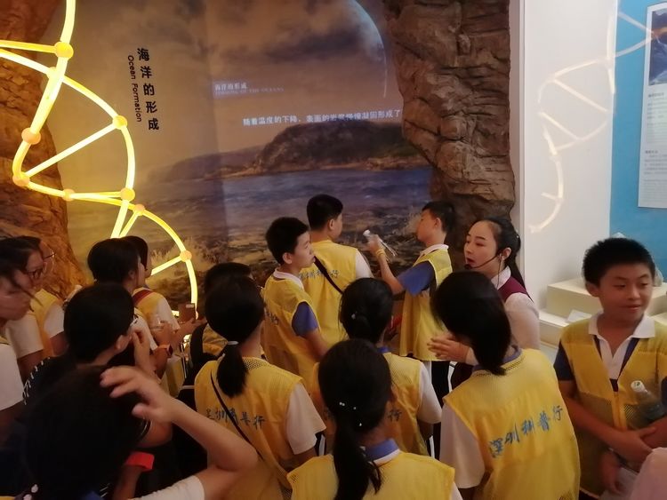首先進入的是地球探秘廳。講解老師一點點講述人類由來的故事,生物的進化,恐龍怎么就突然滅絕了。同學們頓時被吸引住,伸長脖子認真聽。