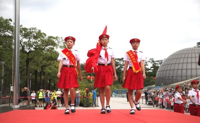 ?儀式結(jié)束,現(xiàn)場(chǎng)觀眾揮舞著手中的小國(guó)旗齊唱《我和我的祖國(guó)》,廣場(chǎng)上蕩漾著優(yōu)美的歌聲,絢爛的中國(guó)紅成為紅領(lǐng)巾廣場(chǎng)上最靚麗的色彩?;仡欀腥A人民共和國(guó)走過(guò)的71年風(fēng)雨歷程,這是一堂生動(dòng)而深刻的愛(ài)國(guó)主義教育課,為少年兒童根植家國(guó)情懷,共創(chuàng)美好未來(lái)。
