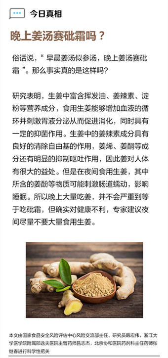 科學(xué)辟謠:晚上姜湯賽砒霜