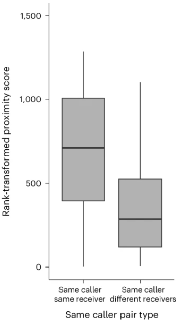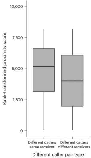 左圖:具有相同呼叫者和接收者的聲音明顯相似值更高;右圖:呼叫者的典型聲音與該接收者回應(yīng)發(fā)出的聲音的相似性分?jǐn)?shù),與呼叫者的典型聲音與其他聲音的相似性分?jǐn)?shù)并無顯著差異